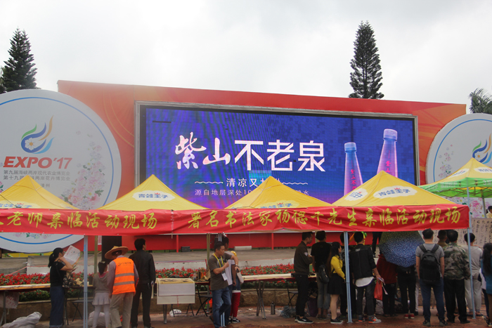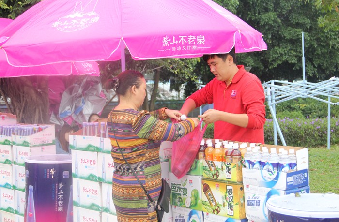 由農(nóng)業(yè)部、國(guó)臺(tái)辦、國(guó)家林業(yè)局、中國(guó)貿(mào)促會(huì)、中國(guó)食品工業(yè)協(xié)會(huì)和福建省人民政府共同主辦的“第九屆海峽兩岸現(xiàn)代農(nóng)業(yè)博覽會(huì)·第十九屆海峽兩岸花卉博覽會(huì)”11月18日在福建漳州花博園開(kāi)幕?;ú?huì)期間,紫山集團(tuán)重點(diǎn)推介了紫山不老泉、紫山臻品礦泉、紫山醬菜等產(chǎn)品,吸引了眾多游人駐足圍觀,前來(lái)展臺(tái)咨詢、購(gòu)買的游客絡(luò)繹不絕。
