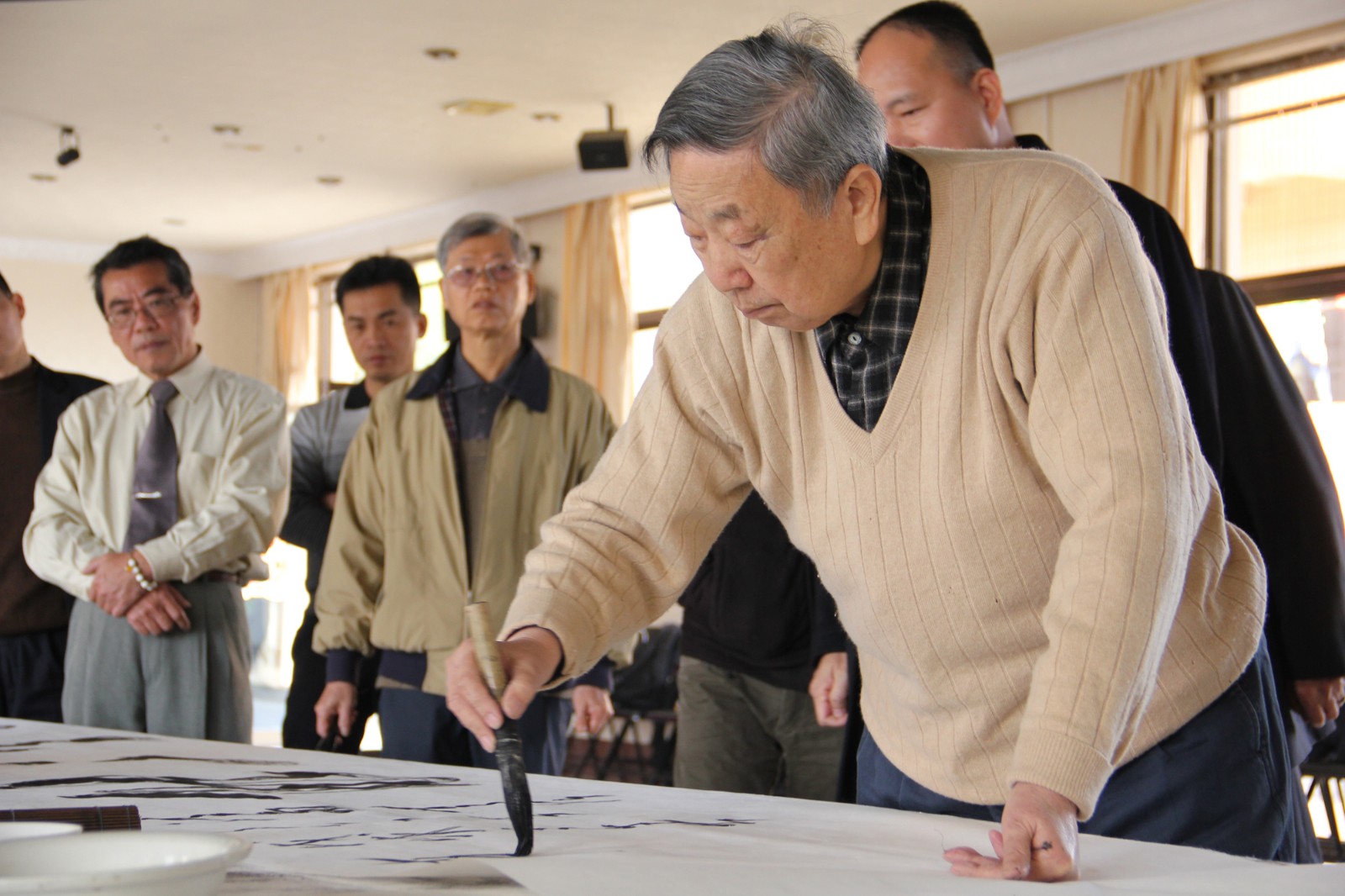 翰墨飄香,情誼十足。3月11日,“兩岸一家親 翰墨傳真情——海峽兩岸書法家走進(jìn)紫山”聯(lián)誼活動(dòng)在紫山集團(tuán)舉行。集團(tuán)董事長(zhǎng)洪長(zhǎng)水、副總裁高瓊珊熱情接待了客人一行。臺(tái)盟中央兩岸書畫院專門發(fā)來(lái)賀電,對(duì)活動(dòng)表示祝賀。