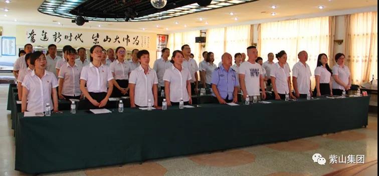 大會(huì)最后,在黨委書(shū)記洪水河的帶領(lǐng)下,紫山全體黨員同志莊嚴(yán)地舉起右手,握拳宣誓,重溫入黨誓詞。